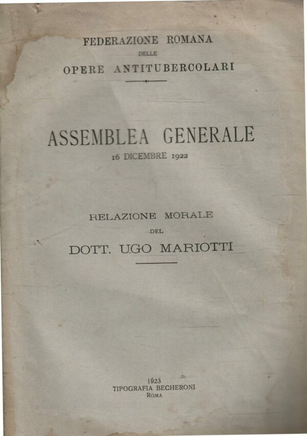 FEDERAZIONE ROMANA DELLE OPERE ANTITUBERCOLARI – ASSEMBLEA GENERALE 16 DICEMBRE 1922