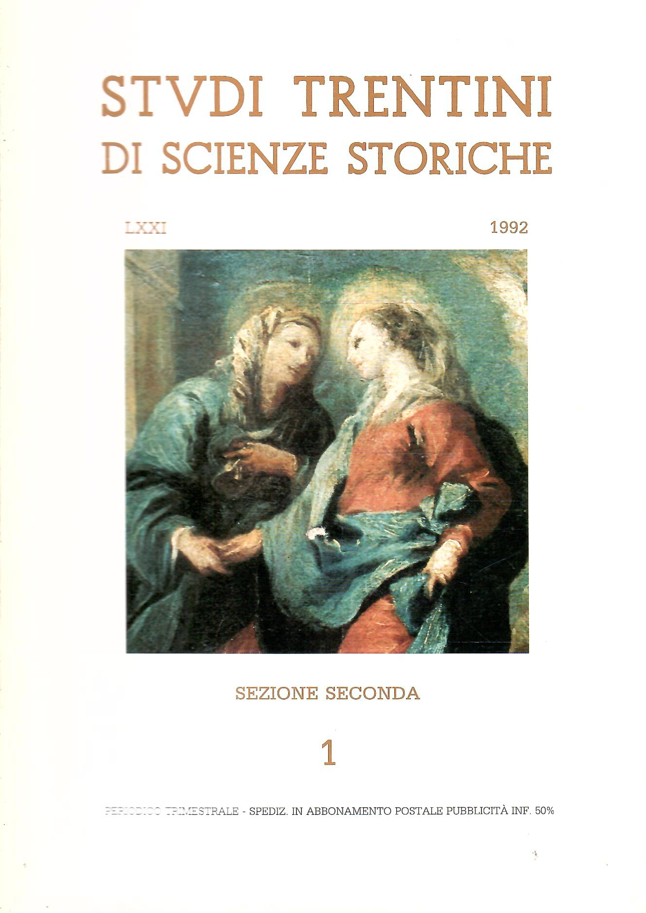 STUDI TRENTINI DI SCIENZE STORICHE SEZIONE SECONDA LXXI/1992 N. 1